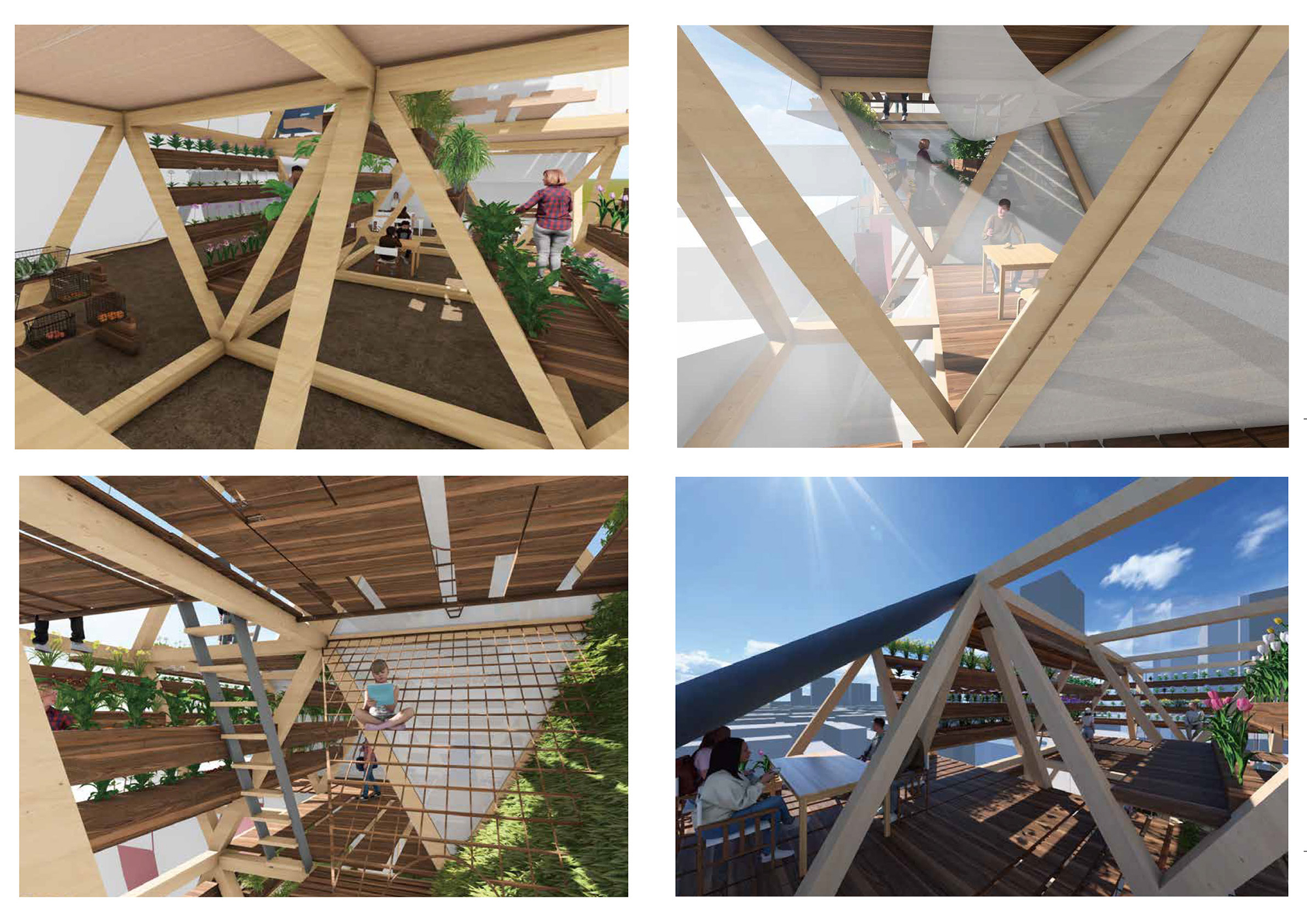 「暮らしと街のひととき」は、壁とスラブでさまざまな居場所を作りながらも、見事な回遊空間をつくり出していました。しかし、こちらも既視感が否めず、この場所にしかできない壁とスラブの並べ方や空間のつくり方、ここだからこの手法を使ったと言えるものがあるとより説得力のある作品になったと思います。