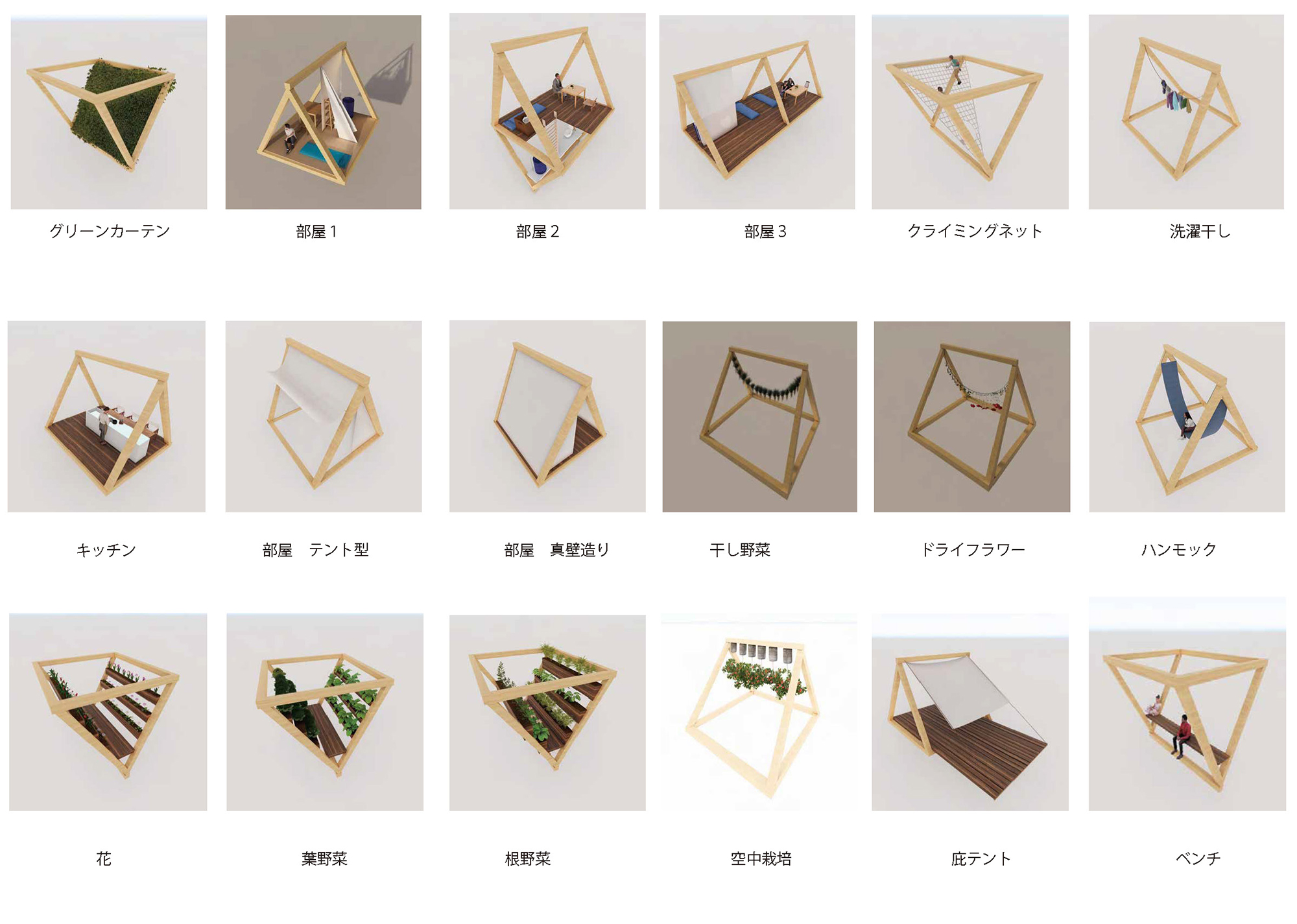 伊藤舞織さんによる「舞台「 」」は、住宅を舞台に読み替え、その役割やプライバシーを揺るがす提案だ。透過素材で覆われ、シルエット状に生活がにじみ出る。第一印象ではアートプロジェクトを思わせる軽やかな仮設性が際立つが、軸組は力強く美しい。そしてその姿は、私生活がビッグデータに絡め取られ日常が丸裸にされる現代人を映し出すオブジェとしても解釈可能な、奥行きある提案だった。