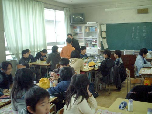 教室は狭いので廊下に飛び出した人達も、寒かったのに頑張ったね |