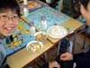 生徒と一緒に給食だ、賑やかな食事となりました。